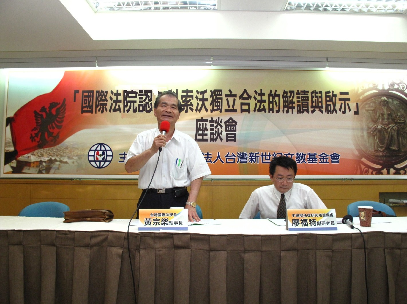 「國際法院認定科索沃獨立合法的解讀與啟示」座談會致詞(黃宗樂)