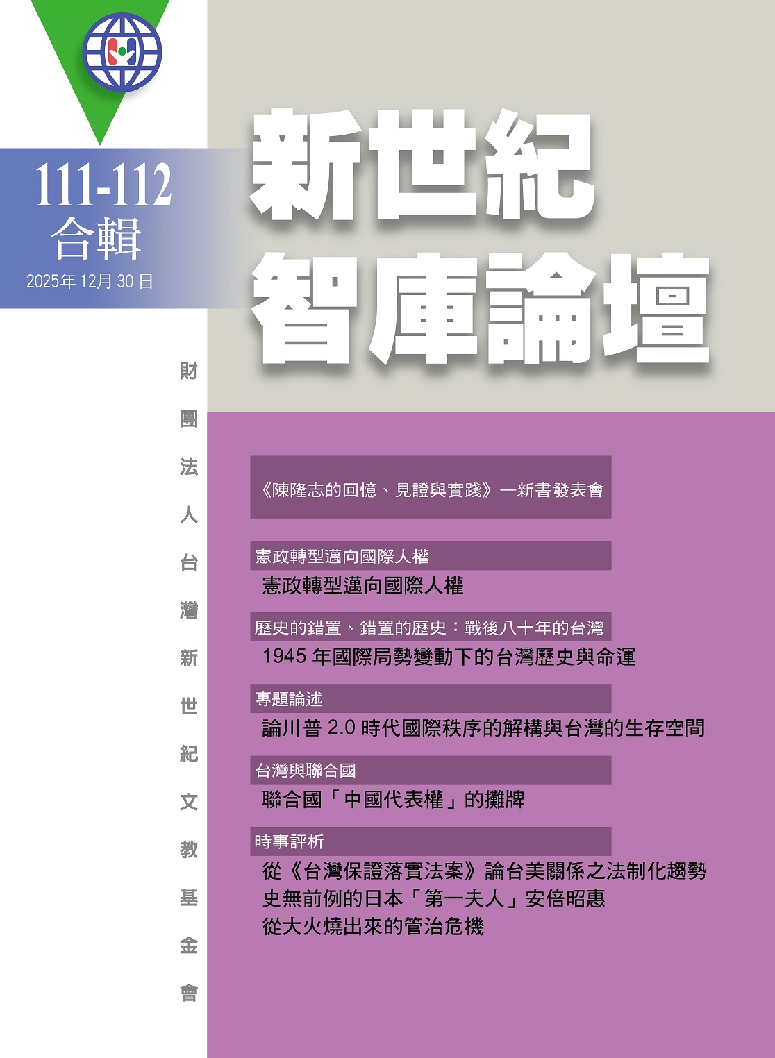 新世紀智庫論壇第111-112期合輯